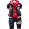 - 3pcs Clothing Set: Shirt,Jeans,Vest