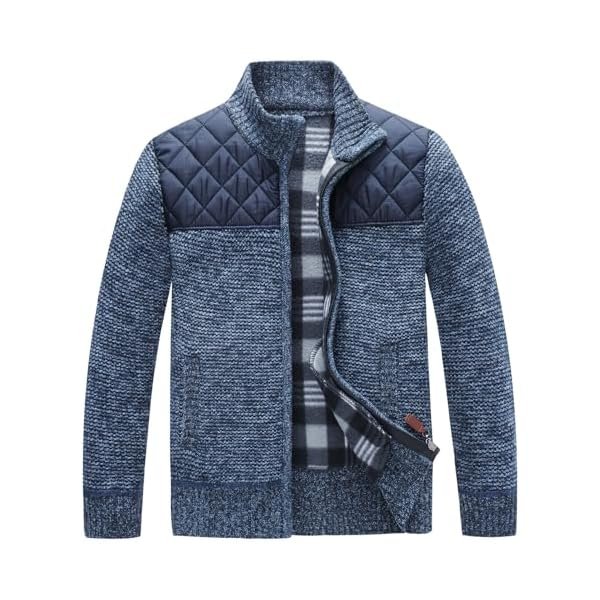 - Design: Stand collar knit sweater, windproof outer with checkered pattern fleece lining, keeps your boy warmer. Features contrast color-blocking at shoulders and chest. Two rib-hemmed side pockets securely hold hands, small items without sagging
