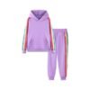 - Stylish & Functional Design: Features trendy rainbow sequin stripes on the sides of both the hoodie and jogger sweatpants; adds a splash of color and fun; the hoodie includes a cozy hood and a convenient kangaroo pocket for extra warmth and style; the jogger sweatpants are equipped with an elastic waistband and ribbed cuffs for a secure and comfortable fit