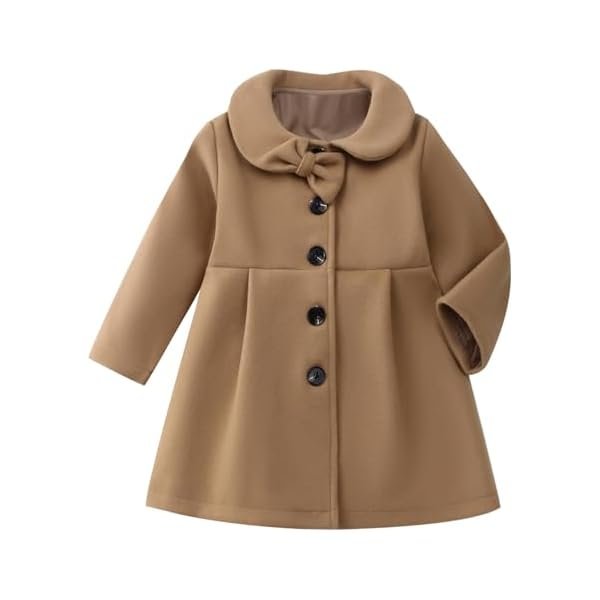- Features: This coat features a dress design with a unique bow decoration on the collar. The front of the baby girl’s jacket has buttons for easy on and off, making your little girl more charming and unique.