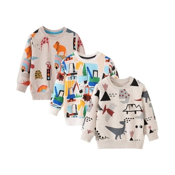 Toddler Boys 3 Pack Cotton Pullover Crewneck Sweatshirt Long Sleeve Cartoon Shirt Sweaters Tops