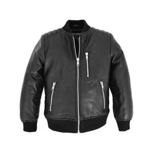 Boys Real Leather Bomber Kids Jacket Varsity Style Childrens 2-12 Years Old CH23 Black