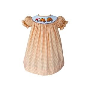 Thanksgiving Pumpkins Girl’s Smocked Bishop Dress Fall Autumn Harvest